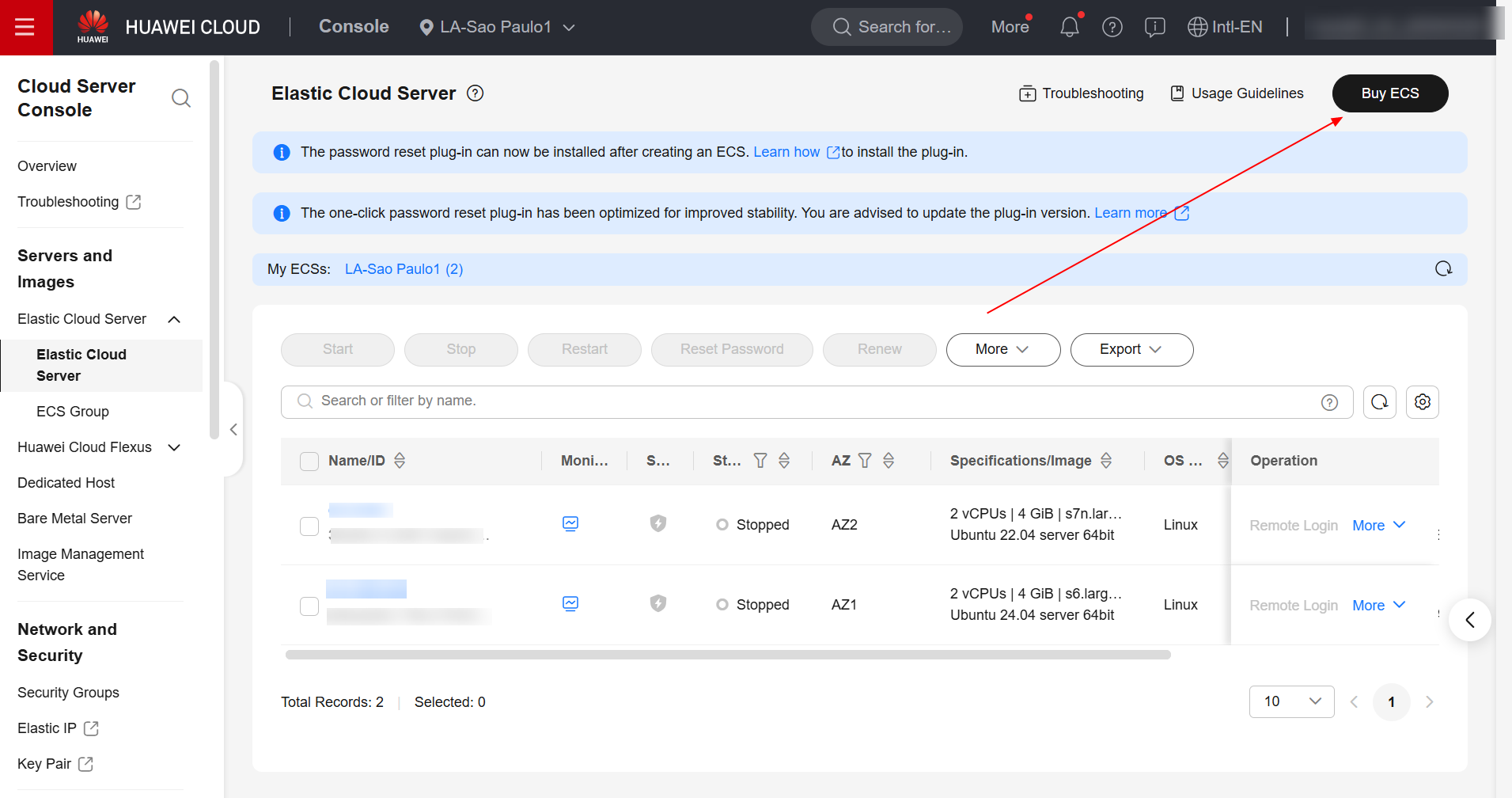 Having prepared the Python code to be executed by the training task, navigate to the ECS service in the Huawei Cloud console and create an ECS with the Ubuntu 20.04 operating system.
