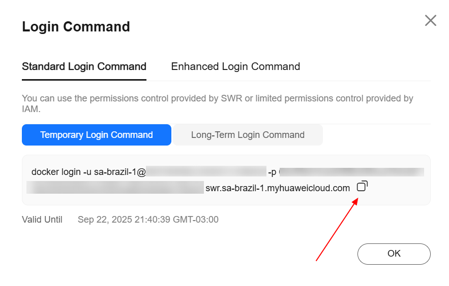 Enter the following command to upload the image to the SWR repository, replacing the region, domain, and organization information with the actual values: