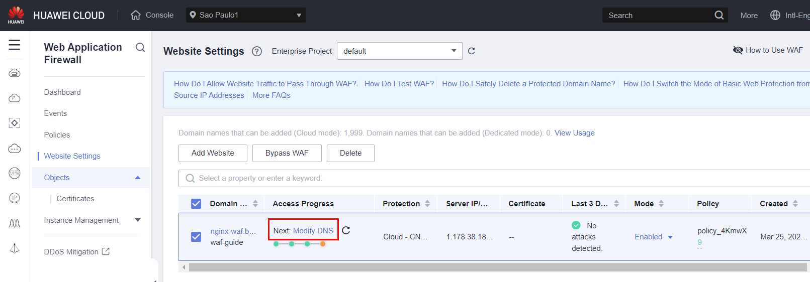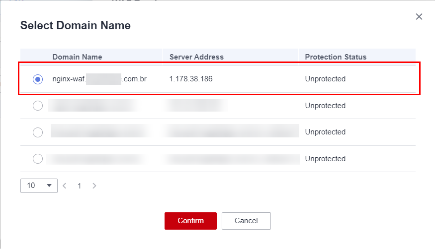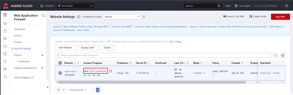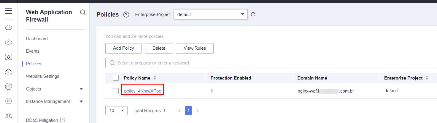 Select your domain, in this case, it’s nginx-waf.example.com.br