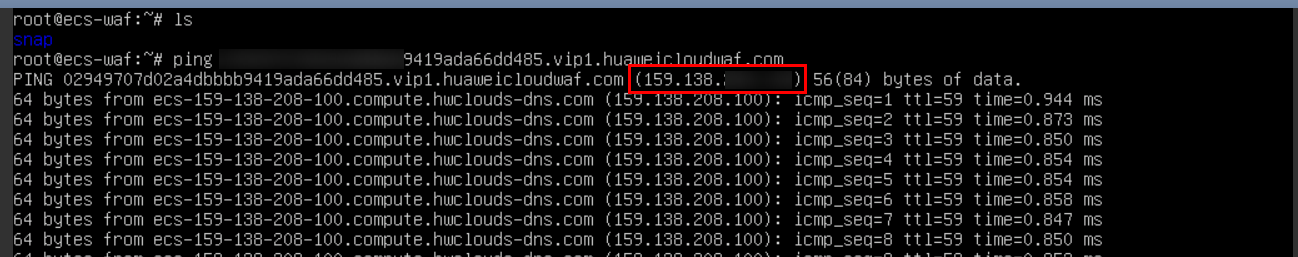 - Copy the CNAME Record and ping this CNAME in your ECS, copy the IP of the WAF.