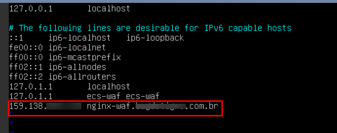 Attempt to ping “nginx-waf.example.com.br” from the ECS. The displayed IP address should correspond to the WAF IP.