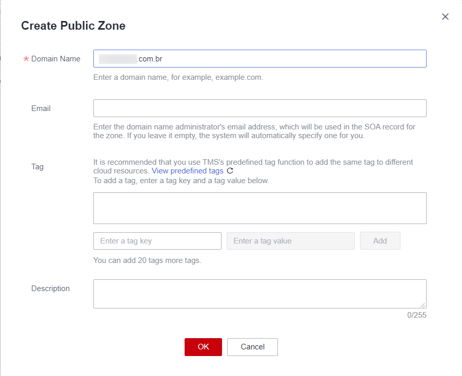Creating a Public Zone: Begin by establishing a Public Zone within Huawei Cloud. This step is fundamental for subsequent DNS configurations: